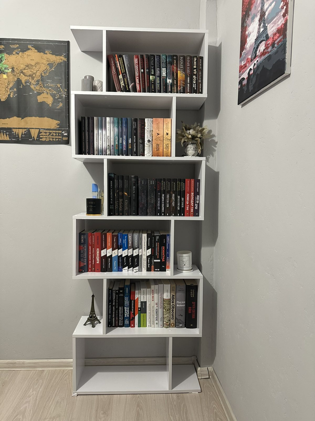– стильний помічник для організації простору в кімнаті Ця полиця для книг не просто помістить весь ваш книжковий арсенал. Вона також буде практичним та зручним елементом для облаштування приміщення, ставши яскравим візуальним акцентом кімнати.