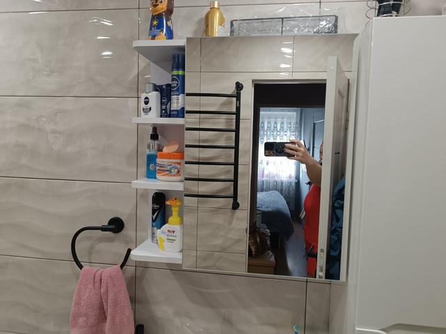 Предмети домашнього вжитку, засоби гігієни та все для макіяжу помістяться на полицях цієї шафи.