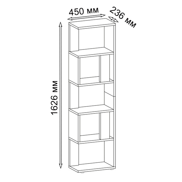 Ширина 450 мм / Висота 1626 мм / Глибина 236 мм, стелаж демонструє ідеальне співвідношення компактності та корисного об'єму. Невелика глибина вивірена для стандартних видань, запобігаючи їх перекиданню та заощаджуючи місце. Використання ЛДСП забезпечує необхідну структурну жорсткість, дозволяючи полицям витримувати значне вагове навантаження без прогину, що підтверджує наше професійне розуміння якості. Цей стелаж підлоги універсальний і легко вписується в будь-який сучасний інтер'єр. Купуйте полицю для папок і книг прямо зараз і інвестуйте в функціональний порядок та бездоганний стиль!