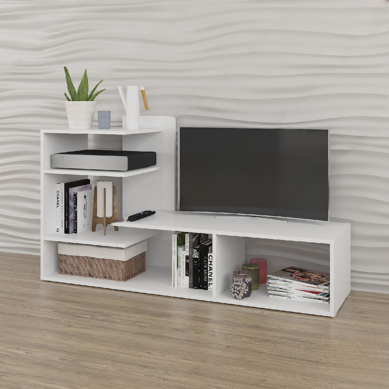 Тумба має сучасний та вишуканий дизайн, що додає стилю до вашого інтер'єру. Вона має полиці, які дозволяють організувати різні медіа-пристрої, аксесуари і канцелярські приладдя.