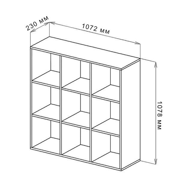 Стелаж має 9 комірок для зручного зберігання книг, фотографій, декору, документів, колекцій.