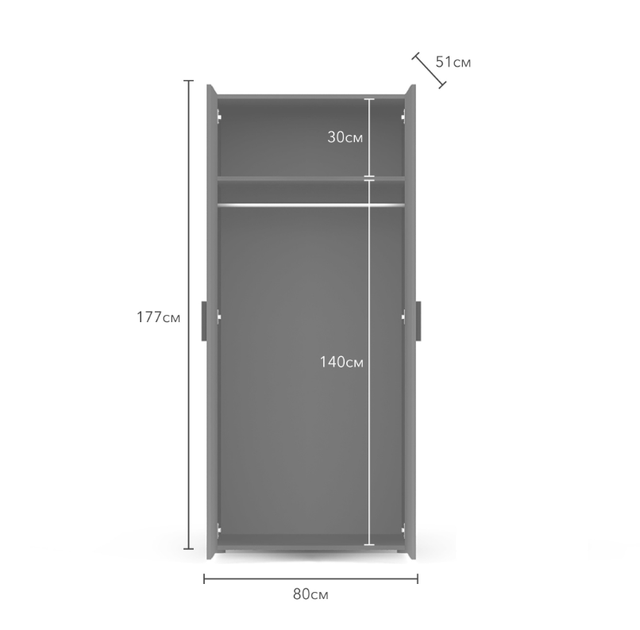 Розмір : Ш 800 мм / В 1770 мм / Г 510 мм
