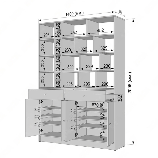 Ш 1400 мм / 2006 мм / Г 396 мм