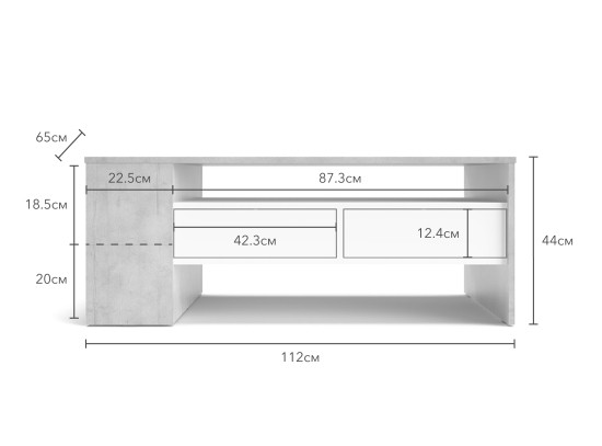 Ширина 1120 мм Висота 441 мм Г 650 мм