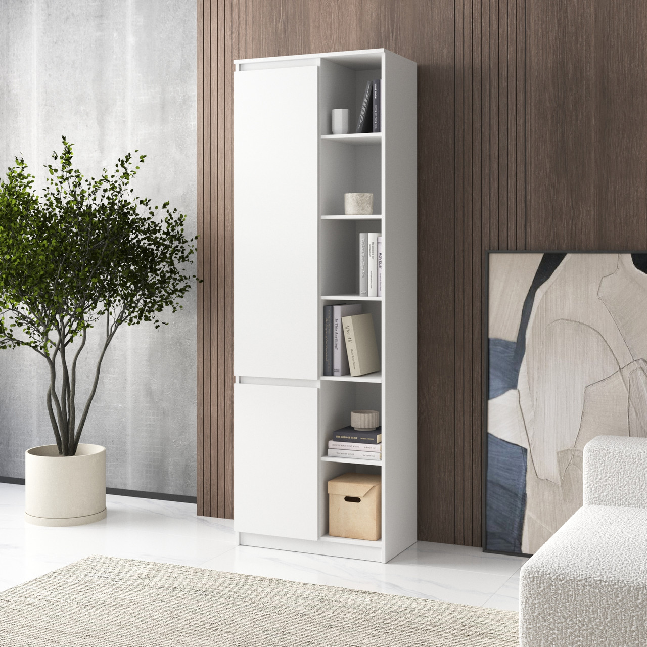 Ця функціональна книжкова шафа об’єднує стиль і практичність, створюючи порядок у будь-якій кімнаті. Шість відкритих полиць дозволяють зручно розміщувати книги, декоративні предмети та аксесуари, а шість закритих відділень з двостулковою конструкцією приховують особисті речі, забезпечуючи чистий і акуратний інтер’єр. Компактна ширина робить стелаж універсальним рішенням навіть для невеликих приміщень, зберігаючи місткість і зручність зберігання.